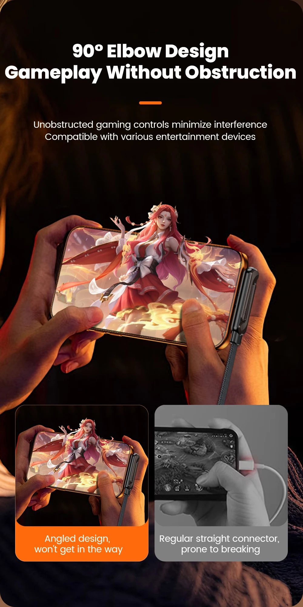 Feature 1: 2-in-1 Dual Type-C Foldable Bracket Bend Data Cable