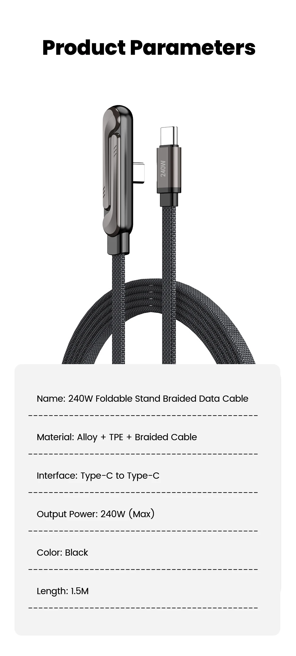 Name: 240W Folding Bracket Braided Data Cable