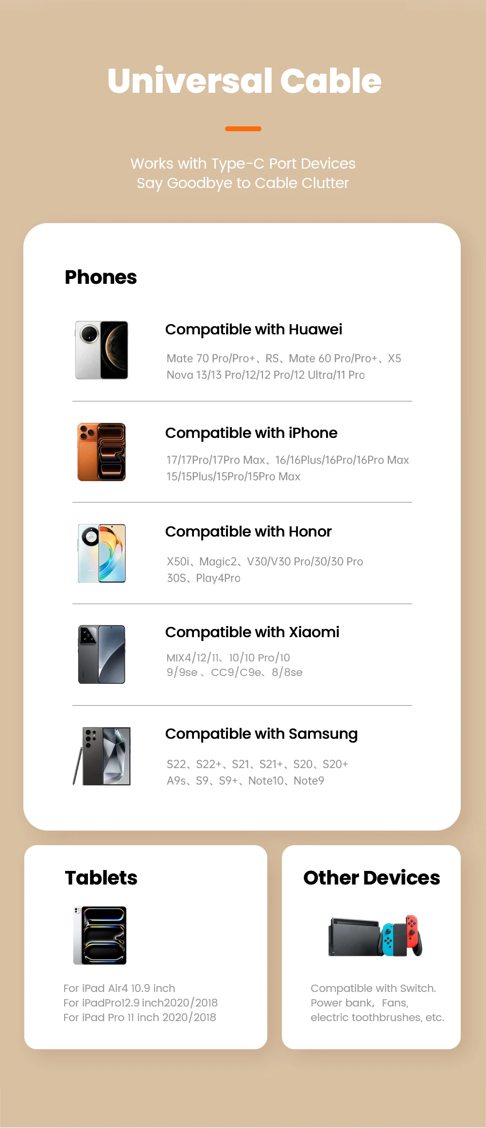 Feature 4: Universal charging cable for mobile phones and tablets